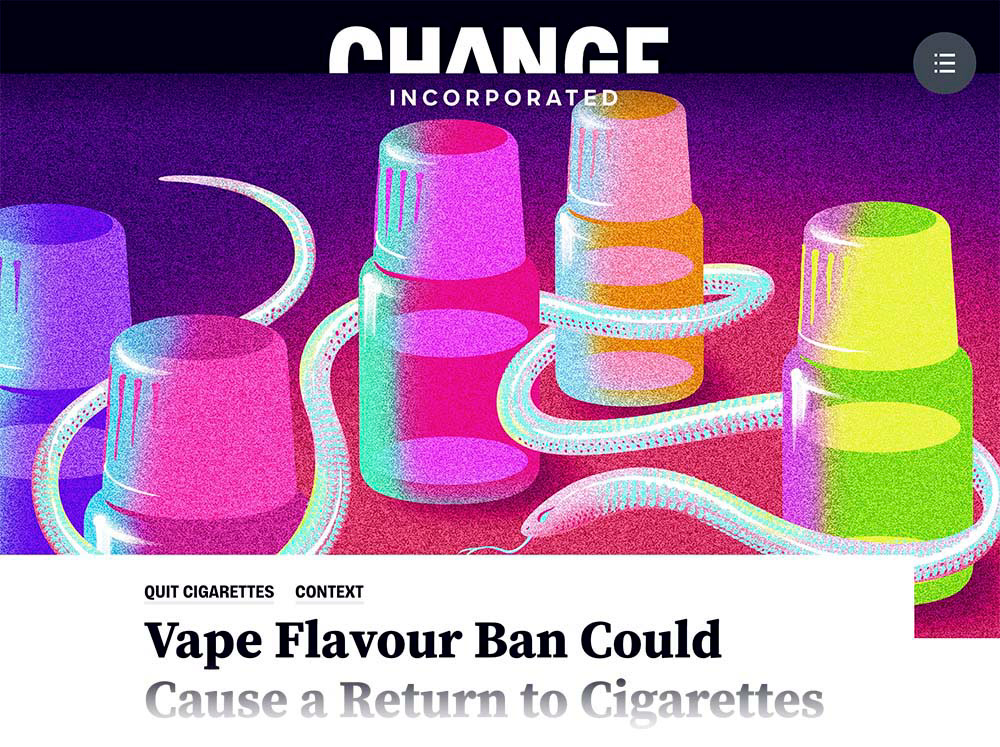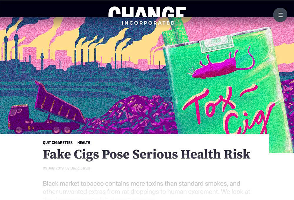 Header illustrations for a campaign funded by Philip Morris International and geo-fenced to UK.