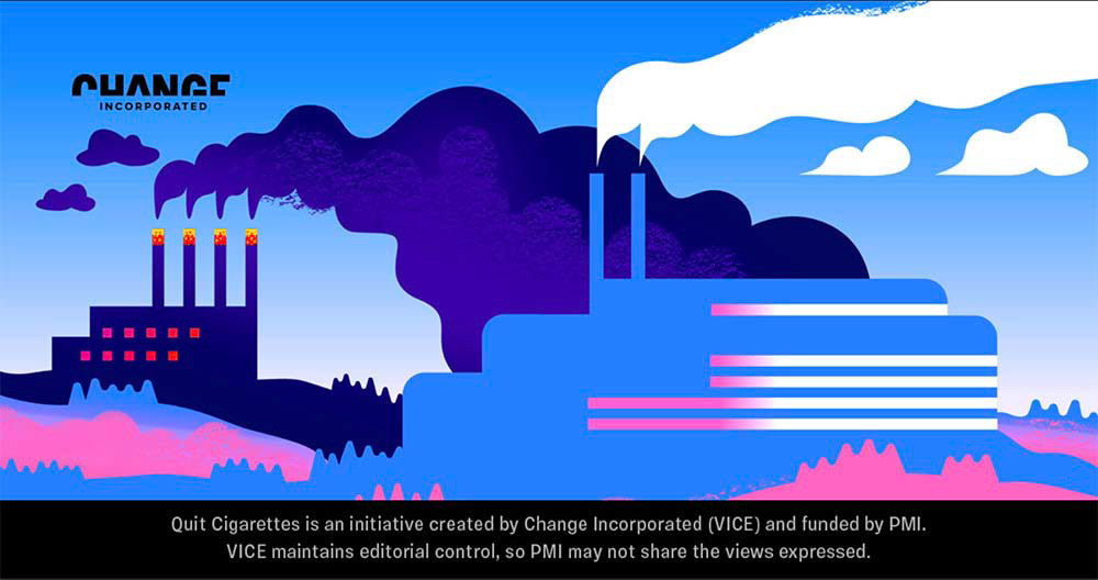 Header illustrations for a campaign funded by Philip Morris International and geo-fenced to UK.