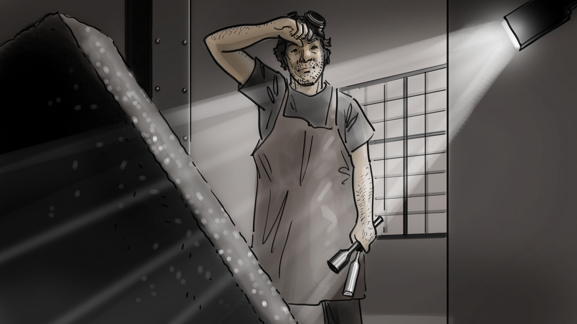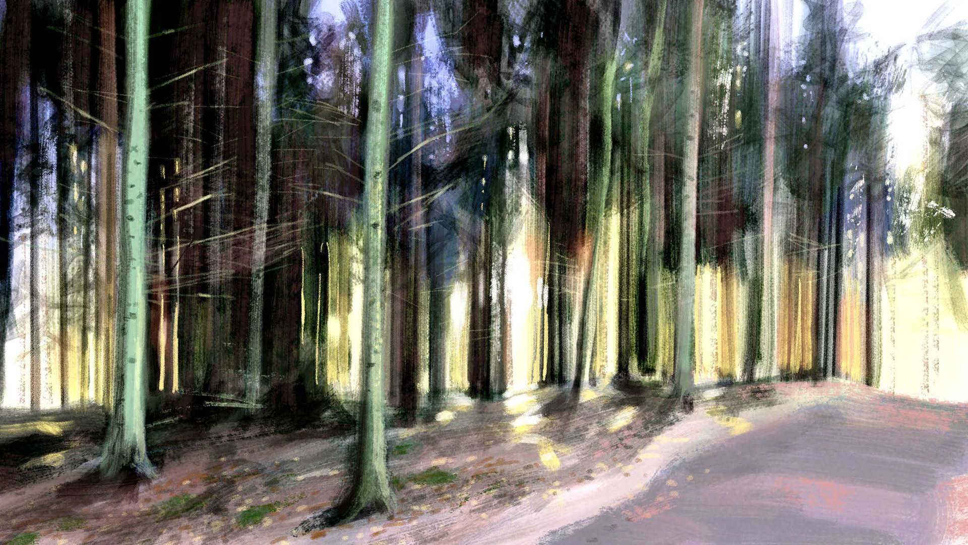 Style samples for colour storyboarding (out of context). Ranging from digital painting to black line with colour.
